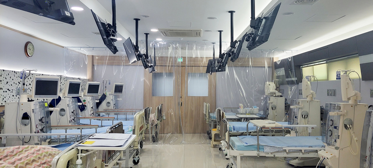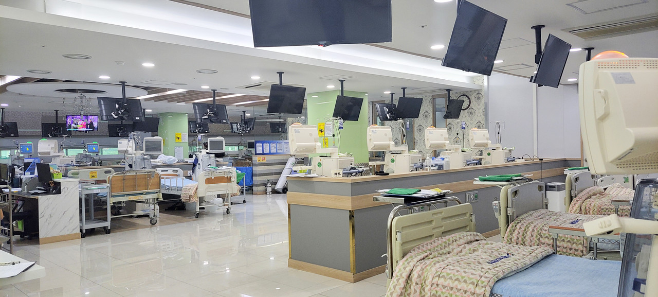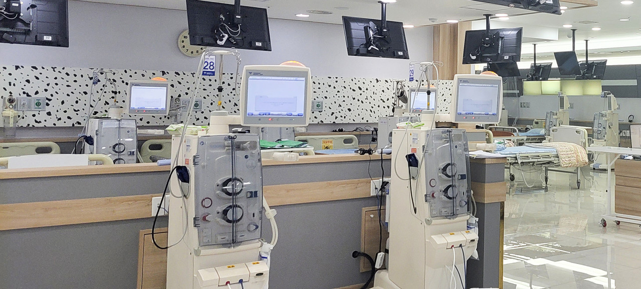 무정전 전원 시스템을 구축, 정기적인 장비 점검 및 정수실 위생 관리를 하고 있으며, 침대마다 개별 TV를 설치해 장시간 투석의 무료함도 덜어드립니다.