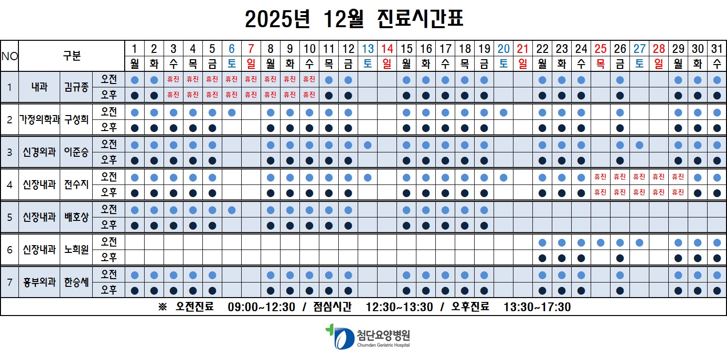 2025년 12월 진료시간표입니다.